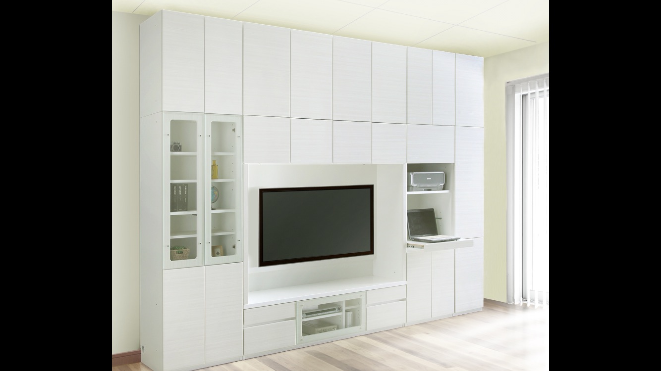 お部屋にマッチしやすいやわらかいトーンのWH木目柄のTVBです。