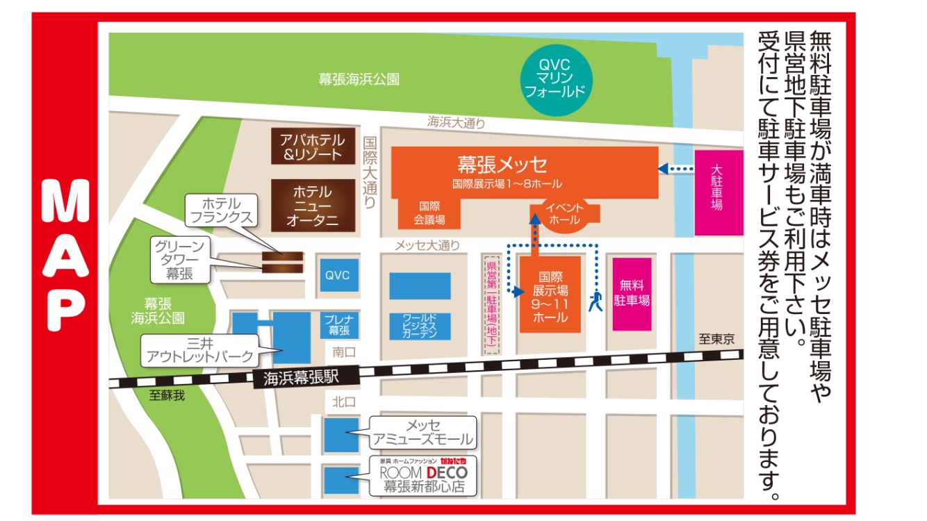 また、臨時駐車場が満車になってしまった場合や臨時駐車場の場所が分かり辛いという場合は、「メッセ有料駐車場」をご利用下さい。