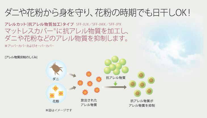 フランスベッドと東洋紡が新しい眠りを提案するために開発した、今までにないポリエステル中空三次元構造体「ブレスエアーエクストラ」を使用したマットレスです。朝までムレずに快適!空気を抱え込んだ特殊な構造体が呼吸をするように湿気を逃がし、ムレずに快適な環境を保ちます。