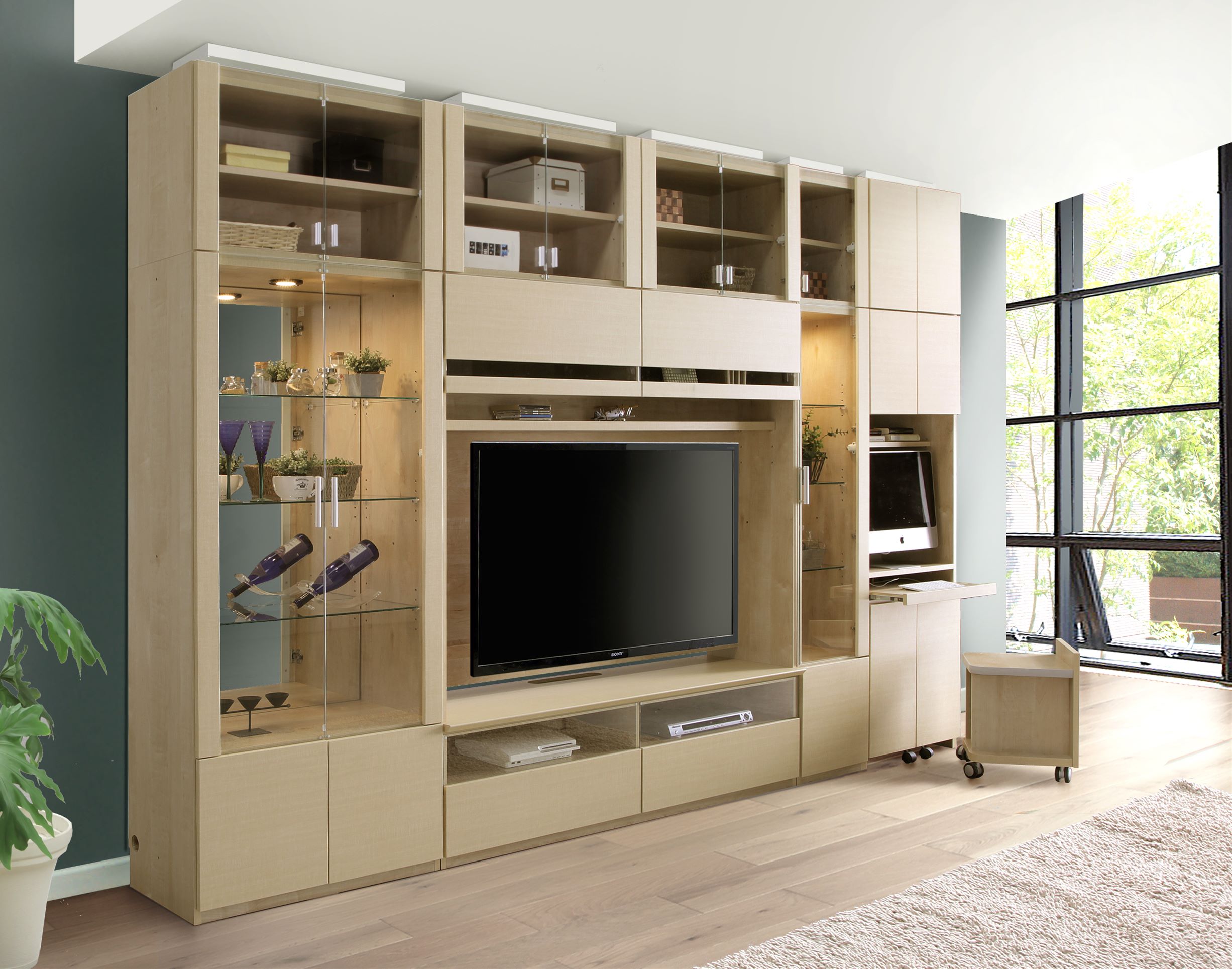 TV収納と大切なコレクションが引き立たせるシンプルな壁面収納です。