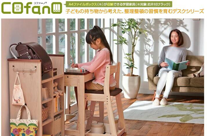 子どもの持ち物から考えた、整理整頓の習慣を育むデスクシリーズ「Cofano(コファーノ)」。デスクのほかにもワゴン・ラック・上棚を同シリーズで取り揃え、それぞれ収納量・設置スペースに合わせてお選びいただけます。