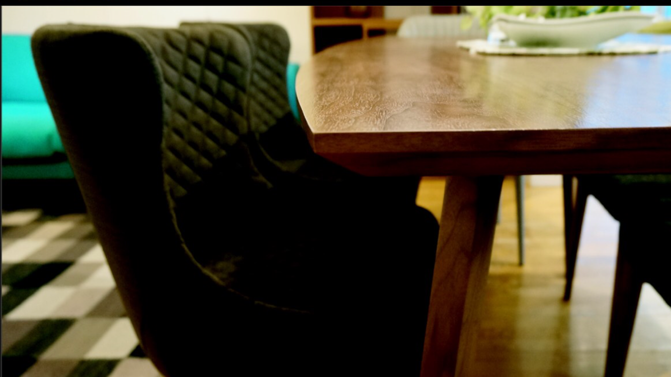 テーブルは人気のウォールナット材の突板をを使用しています。