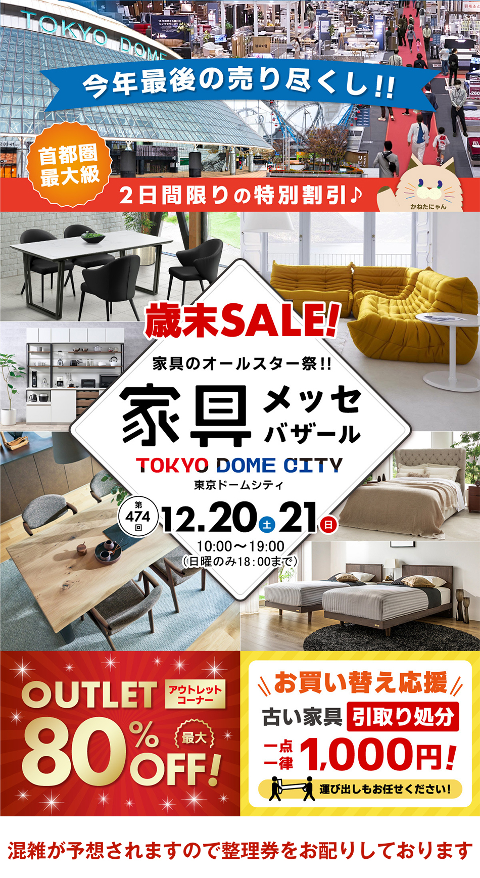 株式会社かねたや家具店 ※イベントに関するお問合せは、メールにてお願い致します。 家具メッセバザール in 東京ドームシティ事務局 メール:event_messe@roomdeco.co.jp |