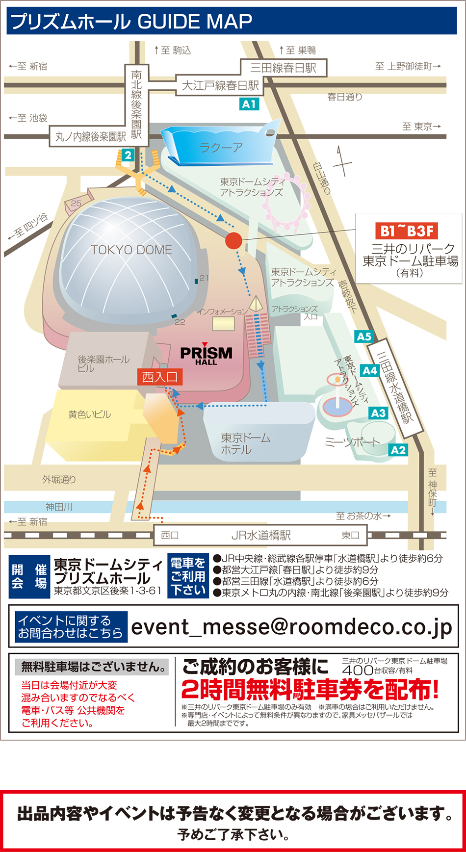 当日は会場付近が大変混み合いますので、なるべく電車・バス等の公共機関をご利用ください。